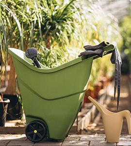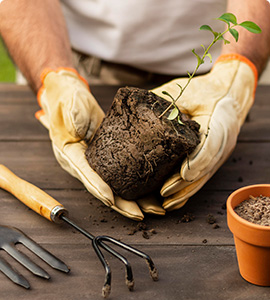 Shrubs, trees, annuals, perennials, roses, vegetables, bulbs, earthenware,